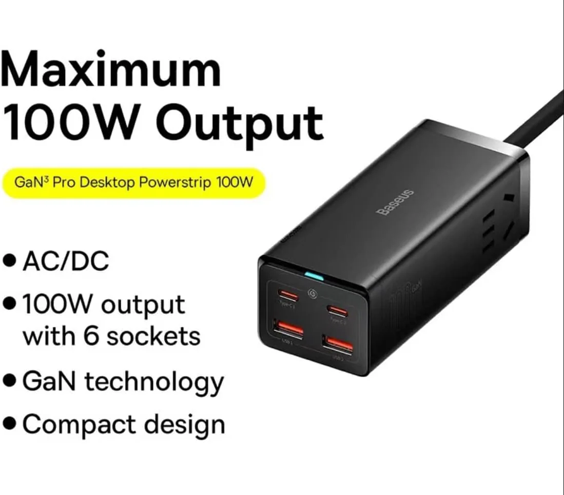 - Product: Baseus GaN3 Pro Desktop Power Strip AC+2U+2C 100W